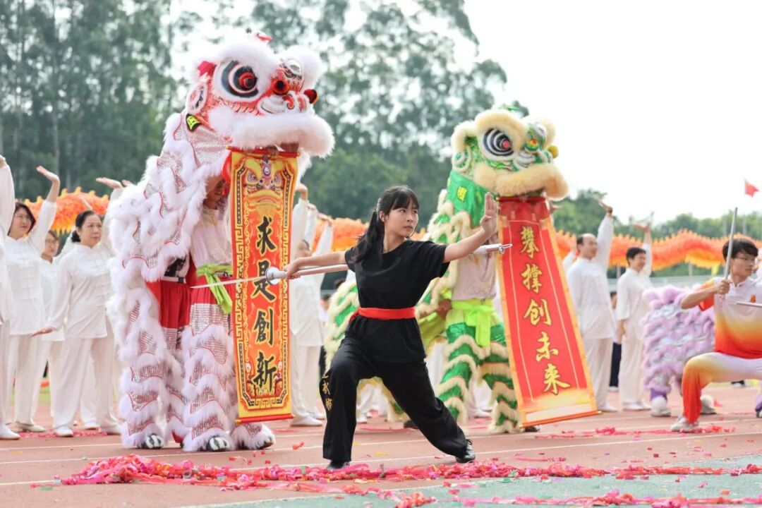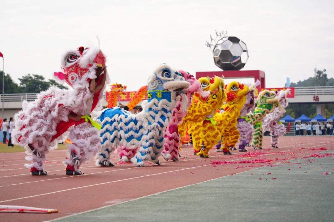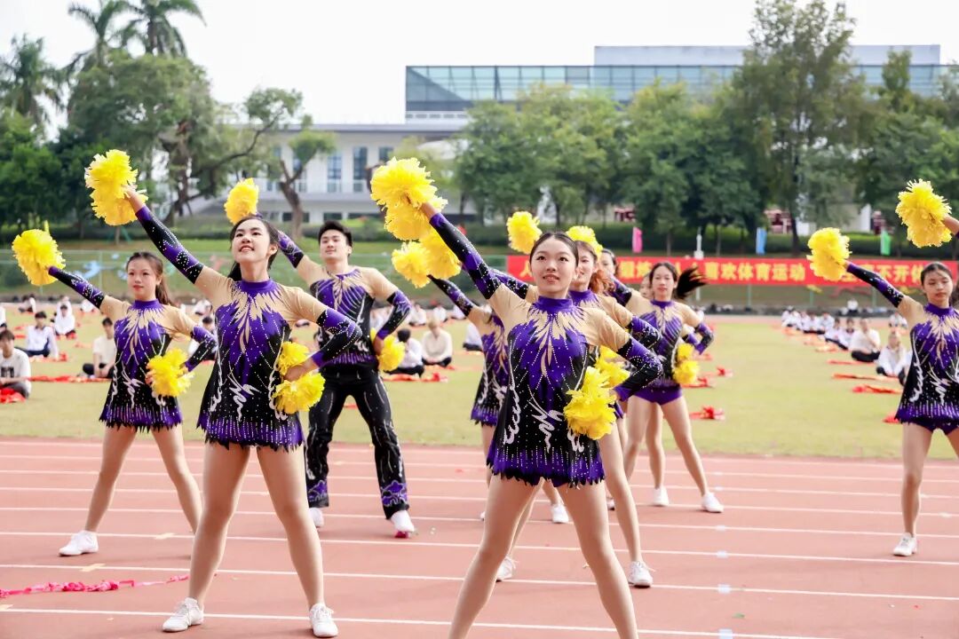 入场仪式上,国旗护卫队步履铿锵、彩旗方队色彩斑斓,23个学院运动员代表方队精神抖擞,嘹亮的口号响彻赛场,充分展现了广工学子开拓进取、奋发向上的精神风貌。开幕式表演环节同样精彩纷呈,舞龙舞狮、绳跃飞盘、啦啦操、篮球操展现出校园体育的独特风采。