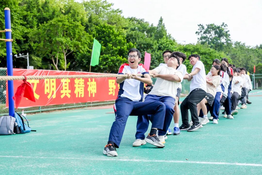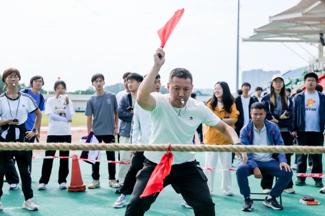 本届运动会聚焦学生竞技活力,设置田径、团体两大类共33个小项,涵盖短跑、长跑、跳高、跳远、铅球、实心球等田径项目,以及拔河、集体跳绳、足球运球接力、排球运球接力、篮球运球接力等团体项目。赛场上,运动员们摩拳擦掌、斗志昂扬,青春在赛道上绽放耀眼光芒。团体项目的协作比拼同样扣人心弦。拔河比赛中,队员们紧握长绳、脚蹬实地,齐声呐喊的号子凝聚起磅礴合力;集体跳绳时,摇绳者节奏稳健,跳跃者起落同步,绳影翻飞间尽显团队默契;足球、排球及篮球运球接力赛里,运动员们精准传接、极速奔袭,让个人风采与团队精神相互交融。