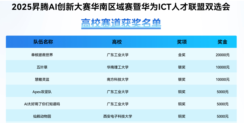 广工学子在2025昇腾AI创新大赛华南区域赛、昇思模型开发挑战赛中获佳绩