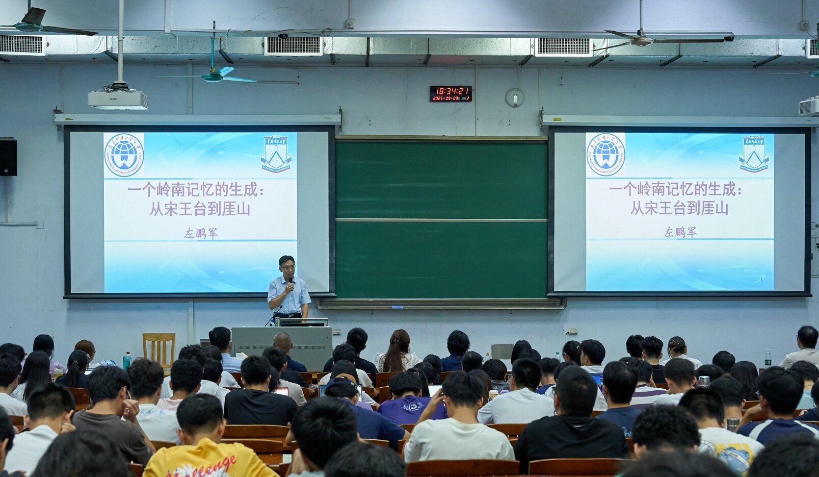 最后,左教授诠释文化记忆的传承与当代意义。他特别强调,从厓山到宋王台,不仅是一个地理意义上的延伸,更是一种文化记忆的传递、升华与重构的过程。这段记忆融合了历史事件、地域文化与士人精神,深刻塑造了岭南文化中特有的遗民气质和家国情怀。他鼓励同学们在回望历史的同时,思考如何在新时期继承这样的文化基因,将其转化为文化自信与创新的源泉。