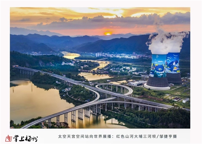 在2021年10月,叶凤华教授曾领衔虎牙手机登录入口团队与广美教授叶正华教授合作完成了广东梅州大埔县三河坝纪念馆巨型冷却塔壁画《红色山河·绿色未来》的创作。该作品以6万平方米的巨幅面积,成功刷新了由俄罗斯艺术家保持的原世界纪录。更为瞩目的是,2022年8月1日,在神舟十四号航天员乘组从天宫空间站发回的“八一”建军节特别视频中,航天员刘洋手持这幅壁画的高清图像向全球展示,并深情寄语:“革命老区旧貌换新颜,向老区人民致敬!”这一历史性瞬间,使这幅承载着红色记忆与绿色愿景的壁画超越了物理空间的限制,跃上宇宙舞台,成为中国公共艺术与航天科技跨界融合的典范,也让世界看到了中国故事的磅礴与绚烂。
