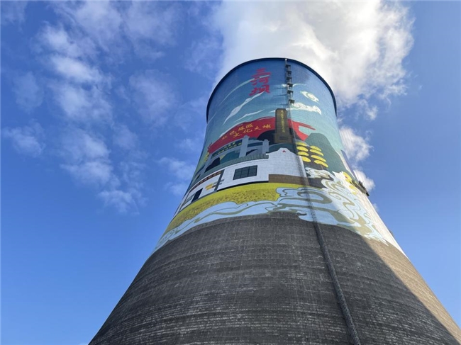 回顾该壁画的创作历程,叶凤华先后十余次深入大埔县三河坝地区实地调研,充分挖掘这片土地作为南昌起义重要战场的大埔县的文化底蕴与当代绿色转型的发展新貌。面对冷却塔独特的双曲面结构带来的视觉呈现难题,团队创新运用数字建模技术进行精准模拟与校正,确保了6万平方米画面在特殊载体上毫无畸变。在艺术表达上,叶凤华以“扎根三河坝、融聚客家风”为准则,为两座相邻的冷却塔设计了既差异化又叙事互补的视觉方案,使其成为展现地方特色的“立体百科全书”。历经18版设计稿的反复打磨,最终作品完美融合了历史文化与现代气象,成为当地红色教育与绿色发展的双重文化地标。