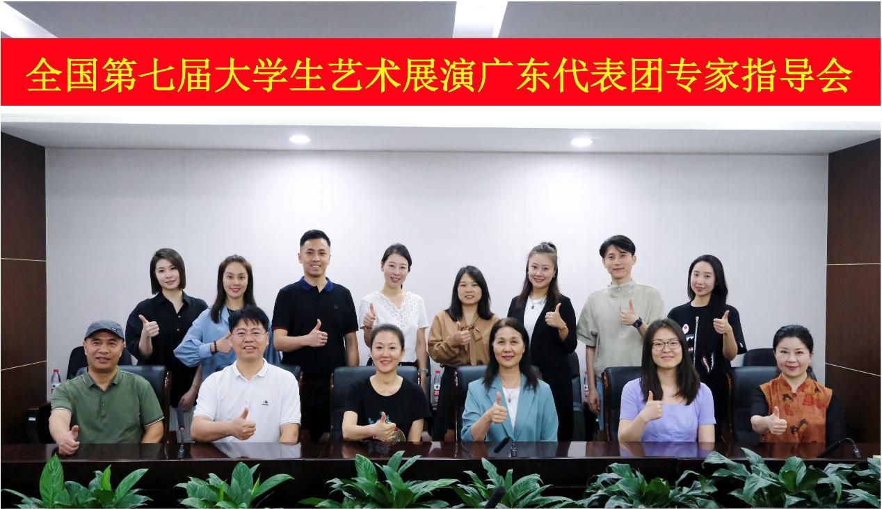 此次,全国展演的筹备工作受到广东省教育厅高度重视,专门成立领导小组及专家团队进行指导,全方位为此次全国展演保驾护航。5月19日上午,广东省教育厅体育卫生与艺术教育处、广东代表团团部办公室、华南师范大学等单位派来指导专家,对我校以及华南师范大学、暨南大学、广东省外语艺术职业学院的四部正在备赛作品进行指导。