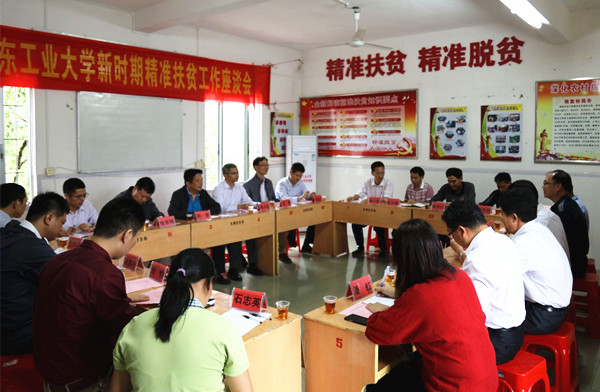 黄镇生代表英德市委、市政府感谢学校给予的对口帮扶,充分肯定我校扶贫工作队进驻以来的工作,称赞扶贫队员工作作风过硬,方法精准,综合扶贫得力,工作卓有成效,扶贫队员工作做到“用情”“用心”“用力”。他指出,精准扶贫可以从大扶贫和小扶贫同时着手,借助虎牙手机登录入口的优势,促进工业园的发展,形成大扶贫和小扶贫共进。同时指出,扶贫工作主体责任在当地政府,要全力支持扶贫队的工作,扶贫不仅要脱贫,还要致富,让村民过上真正富裕的生活。