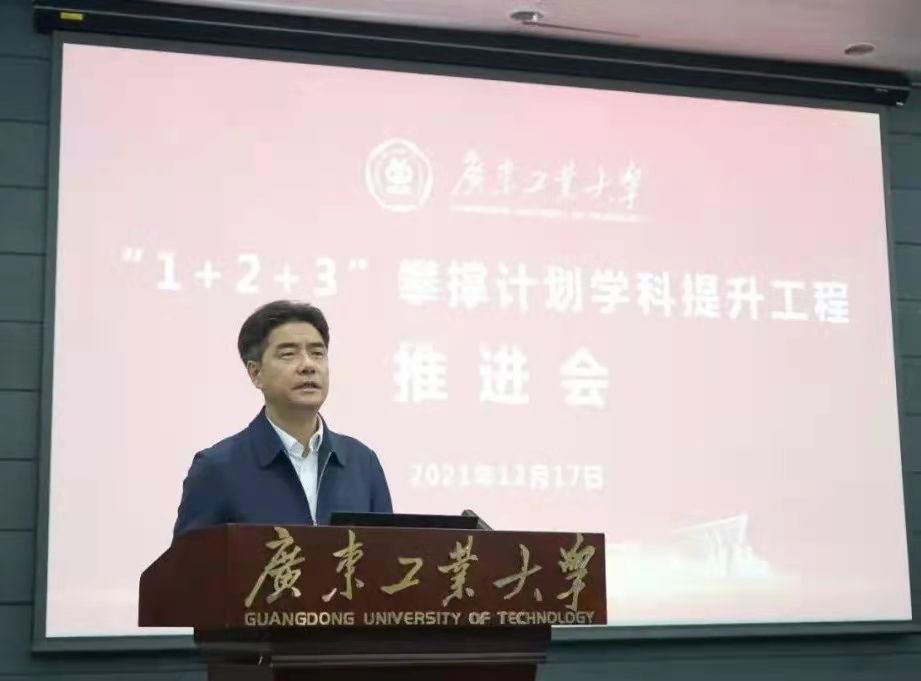 胡钦太作题为“凝心聚力、勇毅前行,建设高水平创新型大学”的动员讲话。他指出,“1+2+3”攀撑计划学科提升工程是对省委、省政府“建设什么样的广工,为广东提供什么样的支撑”重大命题的广工答案。学校要举全校之力推进“1+2+3”攀撑计划学科提升工程,加速推动学校更高质量发展,向高水平创新型大学办学目标砥砺奋进。拟经过5—10年发展,若干学科进入国际一流学科行列,世界主流大学排行前500强、国内前50强,努力建成特色鲜明、世界知名的高水平创新型大学,在更高水平上以更大作为支撑广东制造强省及“双区”建设。