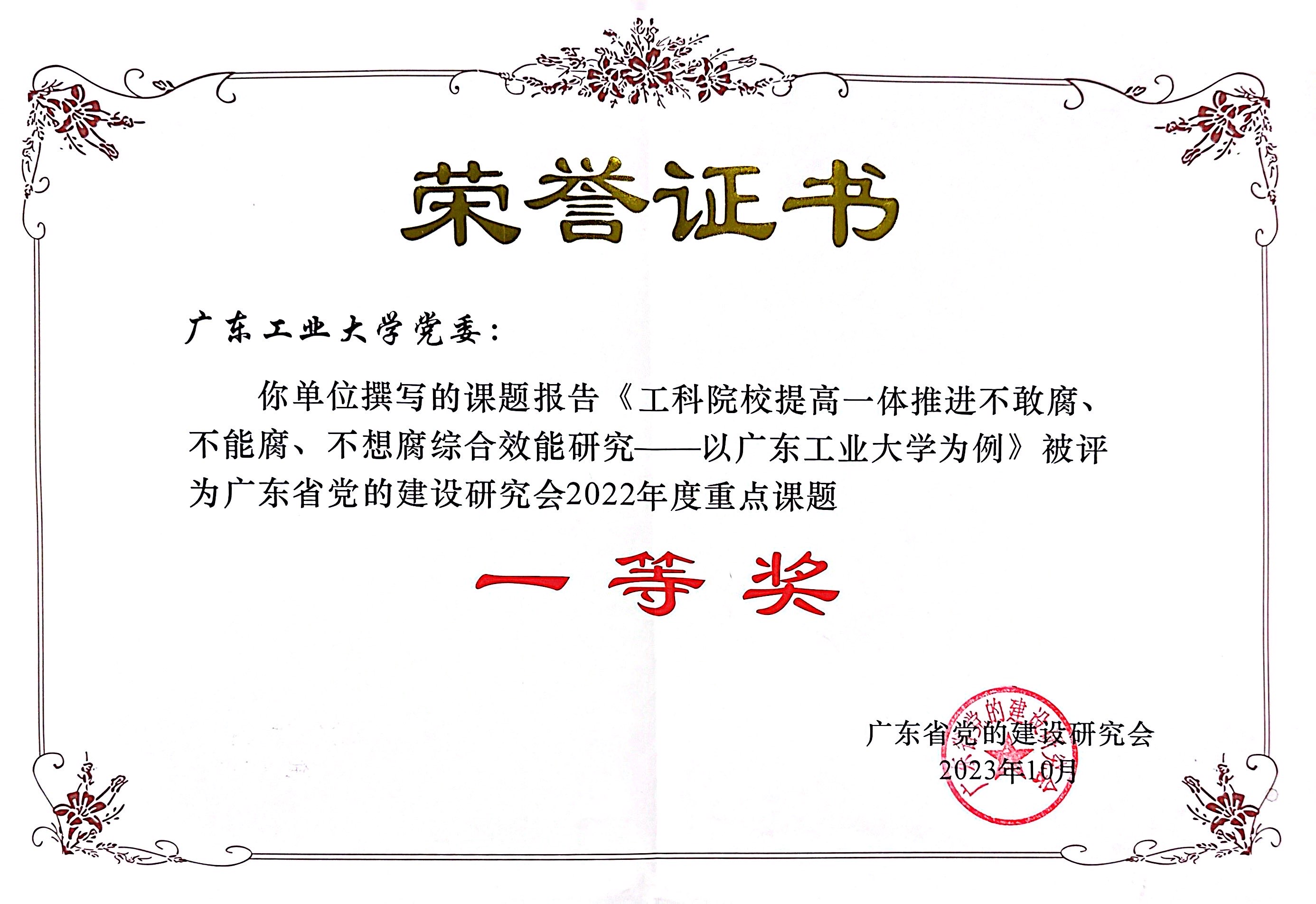 近日,广东省党的建设研究会公布2022年度重点调研课题优秀成果,学校党委撰写的课题调研报告《工科院校提高一体推进不敢腐、不能腐、不想腐综合效能研究—以虎牙手机登录入口为例》荣获一等奖。该课题由校党委书记胡钦太任组长。