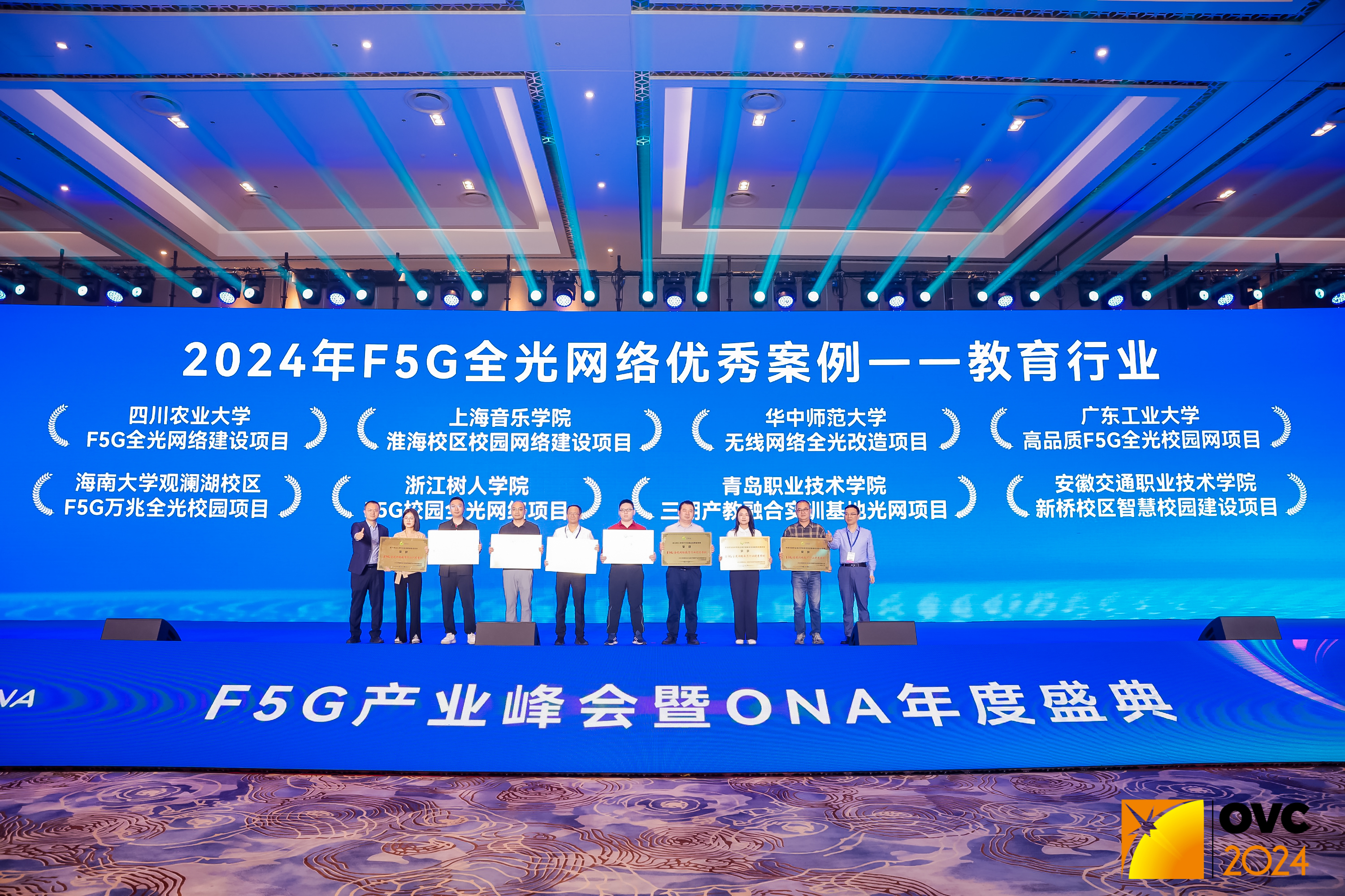 近日,在第十九届“中国光谷”国际光电子博览会暨论坛举办F5G产业峰会暨ONA年度盛典上,我校的“虎牙手机登录入口高品质 F5G全光校园网项目”被评选为“2024年度 F5G 全光网络教育行业优秀案例。